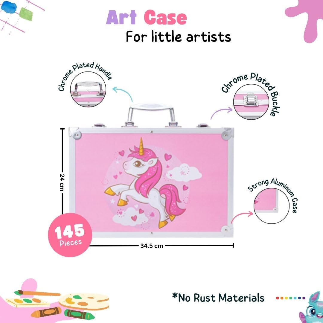 TOYOOS Unicorn Theme Art & Craft Painting Box | 145 Pieces Complete Coloring & Drawing Kit with Suitcase | Watercolors, Oil Pastels, Sketch Pens & Acrylic Brushes (Unicorn Pink)